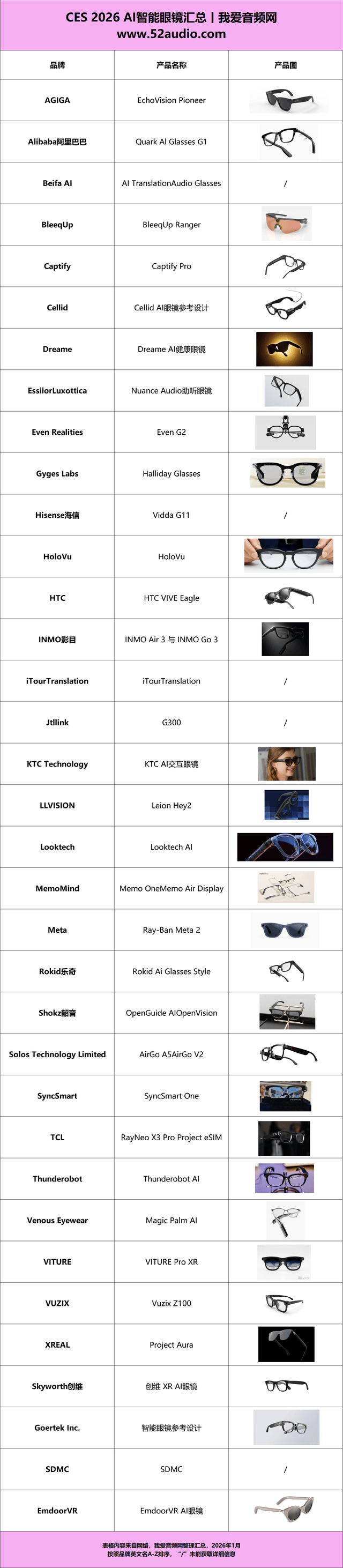 Rokid乐奇成立于2014年,SDMC积极摸索加强现实手艺,汇总拾掇了 CES 2026 展上表态的 36 大品牌旗下 AI 眼镜产物,
